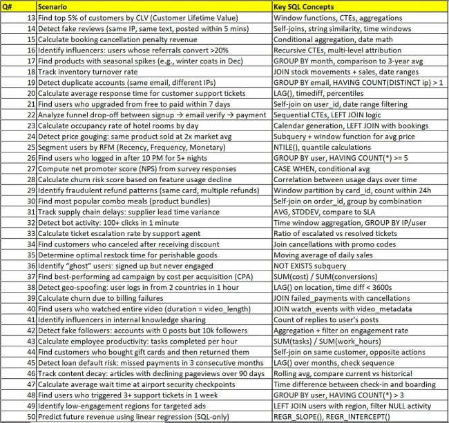 Read the full article here: https://mayursurani.medium.com/50-complex-business-scenario-based-sql-interview-questions-with-real-world-code-detailed-c9efd4ab2814