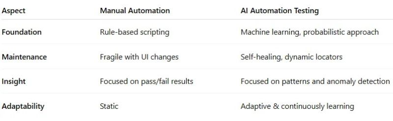 AI testing is not just about “writing test cases in a new way”, but relies on machine learning to detect, fix, and even write tests based on real-time system observations