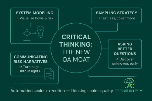 In Treeify’s QA community pilot, 60% of critical defects were discovered during question-driven sessions before any automation ran. Critical thinking begins where requirement specs end — in the gray area where real software breaks.