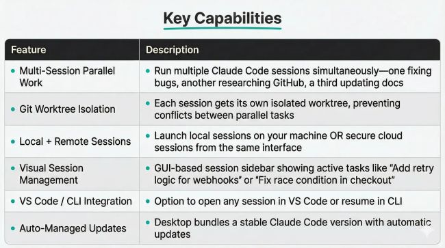 Key Insight: Desktop doesn’t replace CLI — it complements it. Power users can start in Desktop and pop into CLI when they need granular control. The same session can move between interfaces.