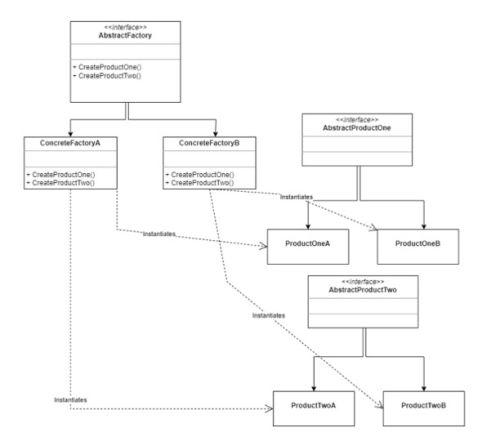 - These concrete factories produce objects with a common interface so those are interchangeable. In our example those are called AbstractProductOne and AbstractProductTwo