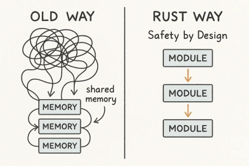 Rust is not just a language — it is a design discipline Most languages let you build first and think about safety later. Rust flips that order. It demands you answer hard questions upfront: