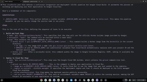 With the Dockerfile, and cloudbuild.yaml verified — submit the build to Cloud Build. This will compile the Rust source code and deploy the final Rust binary into the container for Cloud Run: