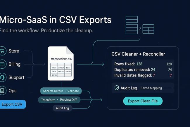 You know that moment when a teammate says, “Just export it to CSV and I’ll fix it”? That’s not a workflow. That’s a cry for help. CSV exports are where modern teams dump the messy parts of their operations: billing exceptions, compliance audits, inventory weirdness, recruiting pipelines, renewals, refunds, affiliate payouts… all the “it doesn’t quite fit our system” stuff. And that is exactly where micro-SaaS niches hide. Let’s dig into how to find them, validate them, and build them — without inventing a market from scratch.