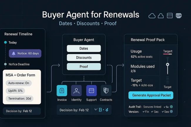 That’s where a buyer agent for SaaS renewals gets interesting: an AI system that keeps the calendar straight, pulls the evidence, drafts the negotiation plan, and produces a clean “proof pack” finance and security can approve without a scavenger hunt. Not a robot that auto-signs contracts. A buyer-side operator that makes renewal work boring.