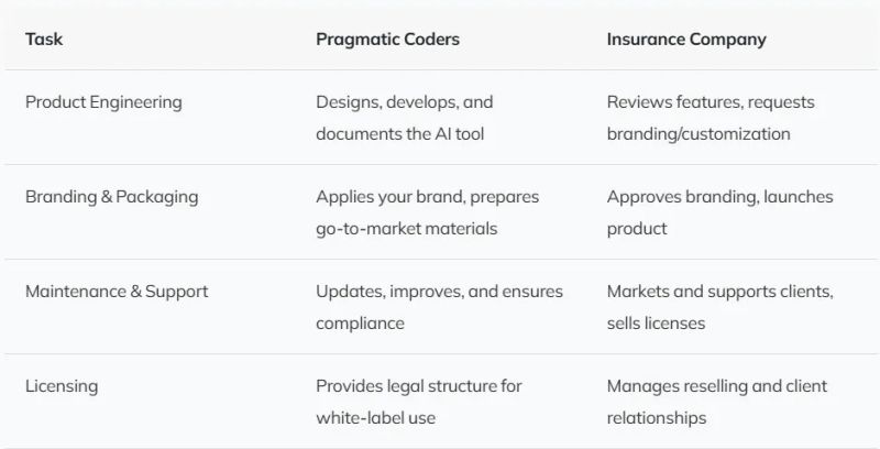 - You offer this product (e.g., to smaller insurance brokers or industry partners) as your own, providing instant value-add without investing in full in-house development.