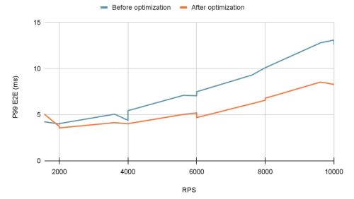 After fixing this, latency dropped sharply, as shown in the graph below.